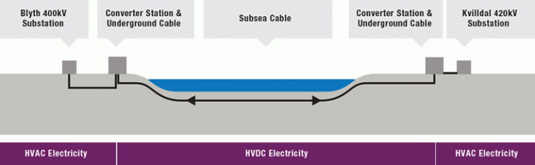 An interconnector is a connection between the electricity transmission systems of different countries. For North Sea Link the connection will be made via subsea cables.
